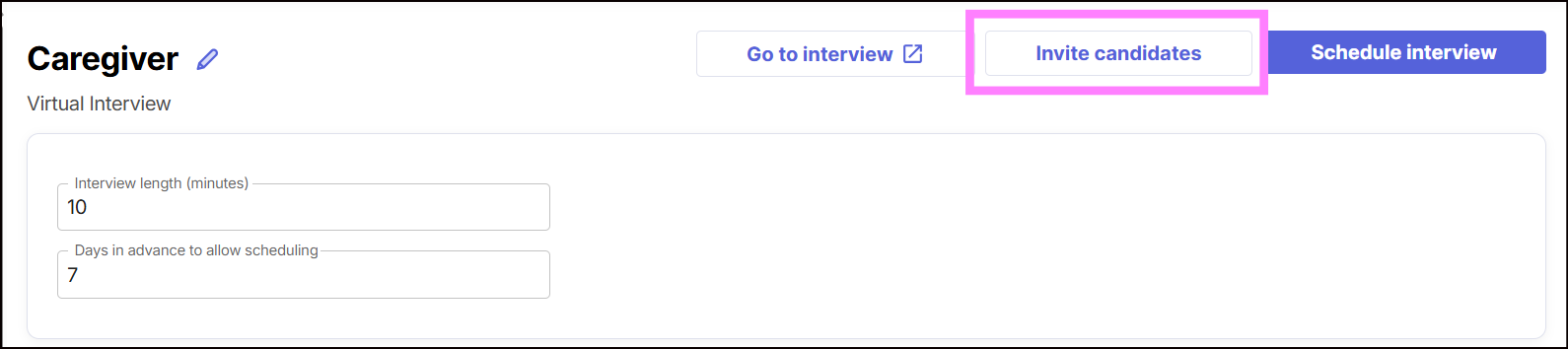 4. Click on the Invite candidates button at the top of the page.