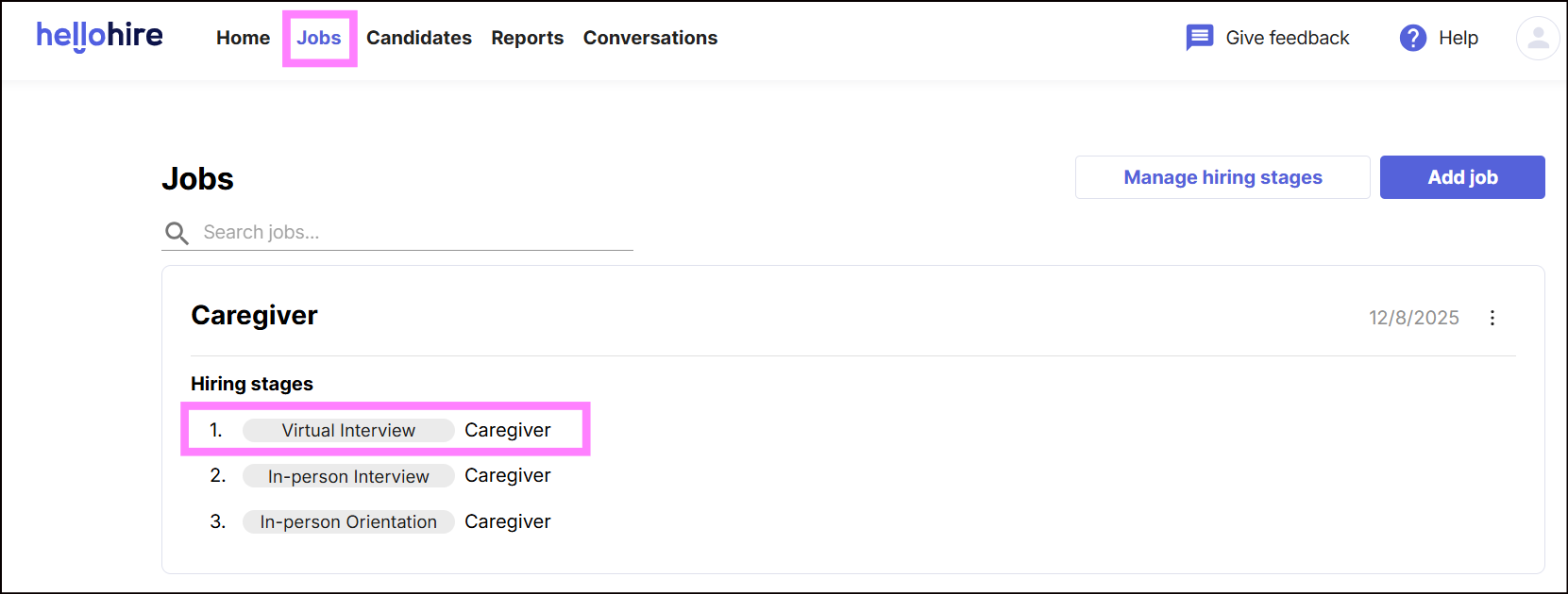 3. Under Hiring stages select Virtual Interview.