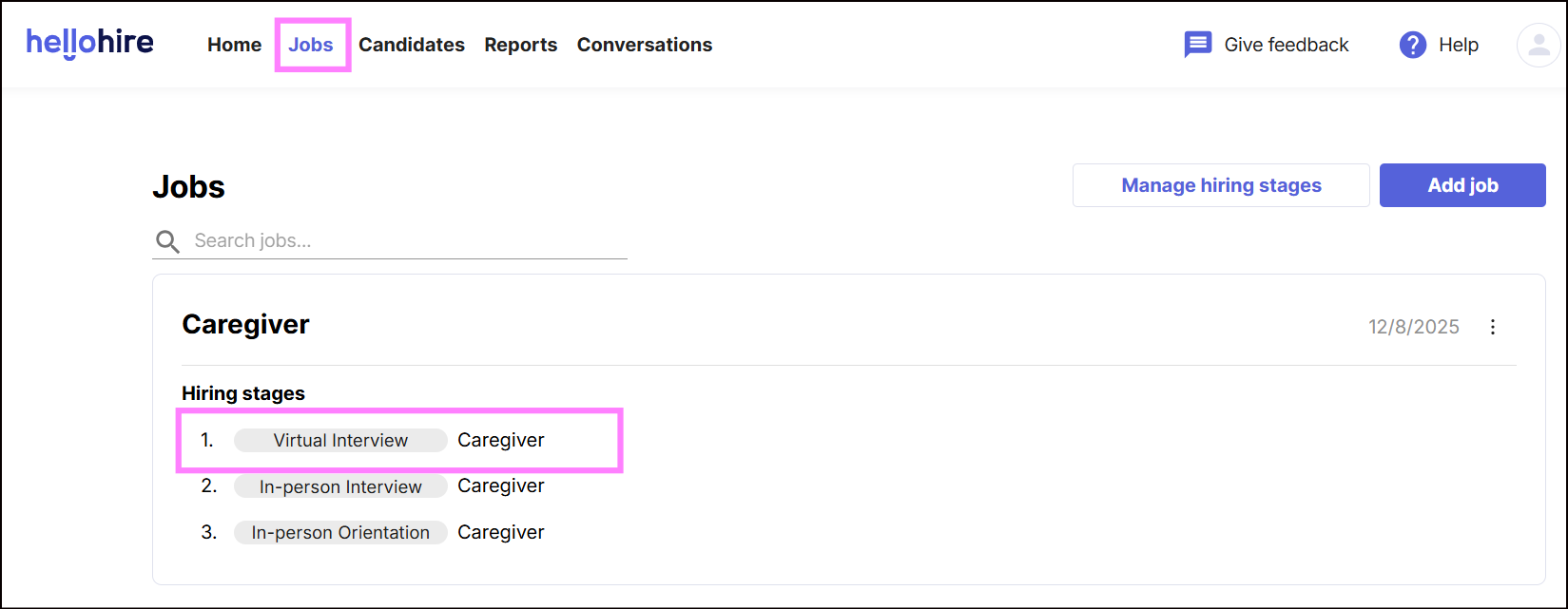 2. Select the job tied to the interview you want to cancel