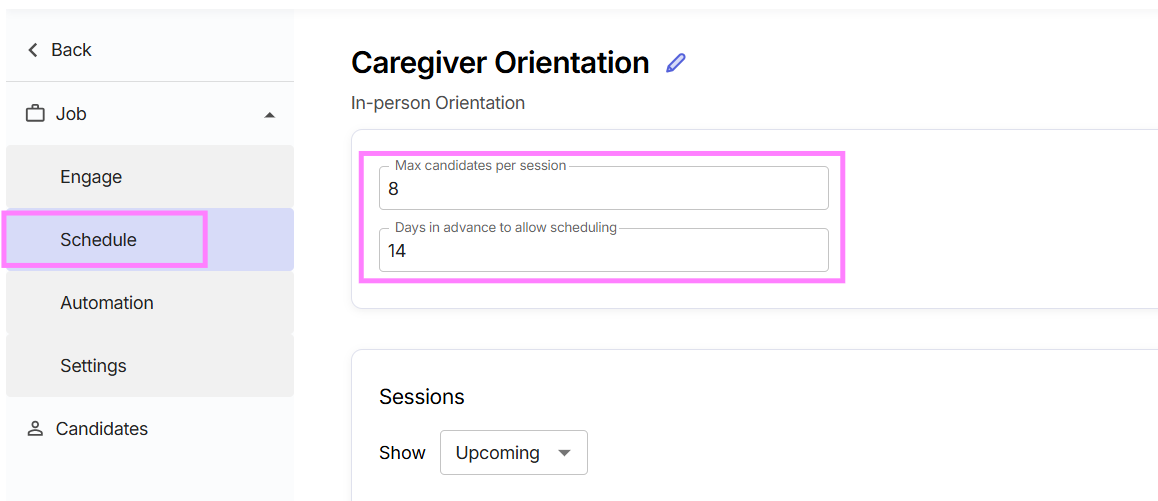 - Set Days in advance to allow scheduling (how far out candidates can book their preferred in-person orientation date)