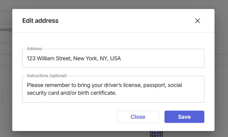 - Under the job details, you can edit the orientation location address and include instructions (e.g., arrival details, parking info, what to bring).