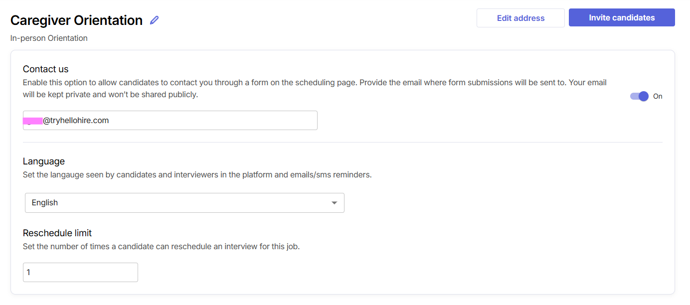 - Reschedule Limit – how many times a candidate can reschedule their in-person orientation.