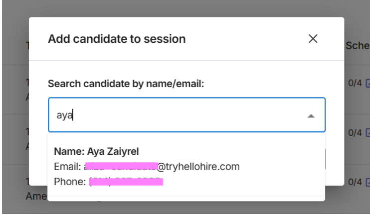 - On the session or orientation date where you'd like to schedule the candidate, click the “+human” icon