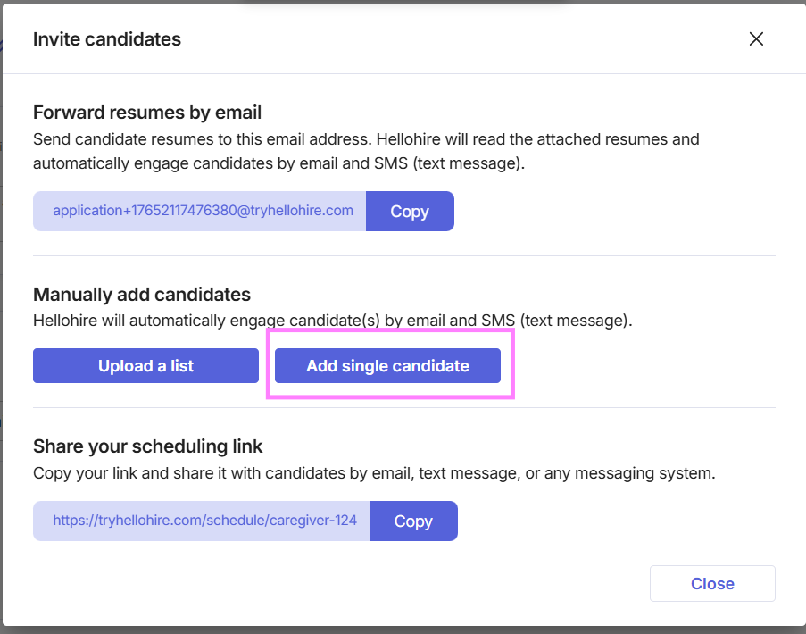 In this article, we’ll show you two simple ways to manually add candidates in Hellohire and invite them to schedule an interview.