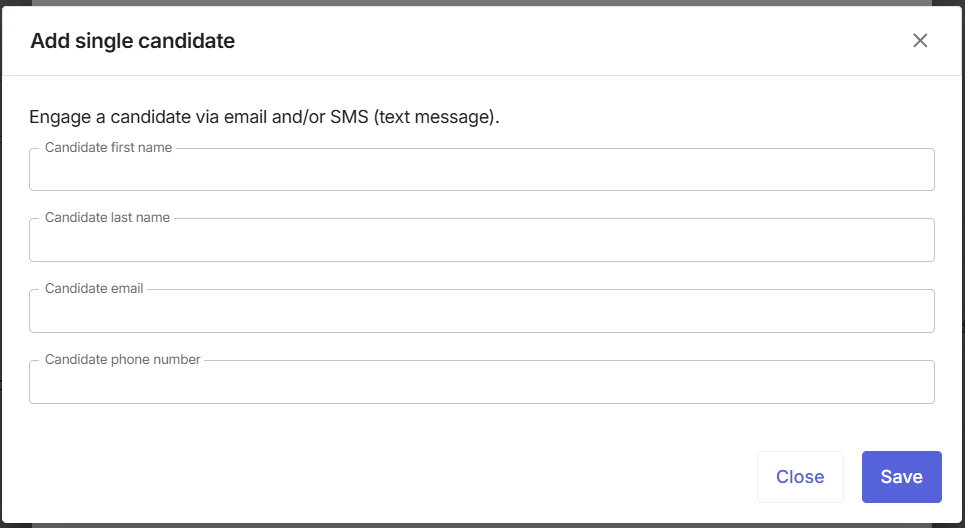 Once added, Hellohire will automatically engage candidates by email and text message (Canada and US mobile numbers only).