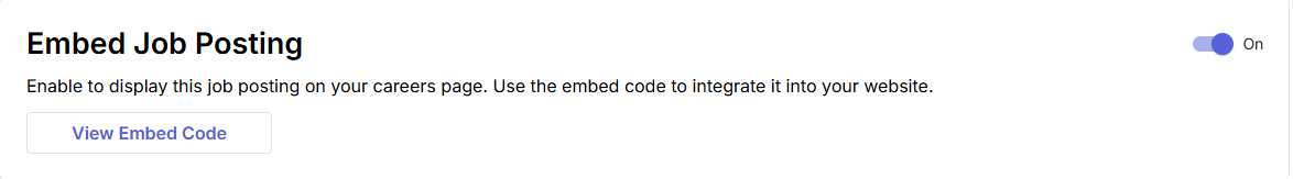 Turn this on to showcase the job on your careers page, and use the embed code to add it directly to your website. For guidance, check out: How to Add and Customize Your Hellohire Jobs Widget on Your Website.
