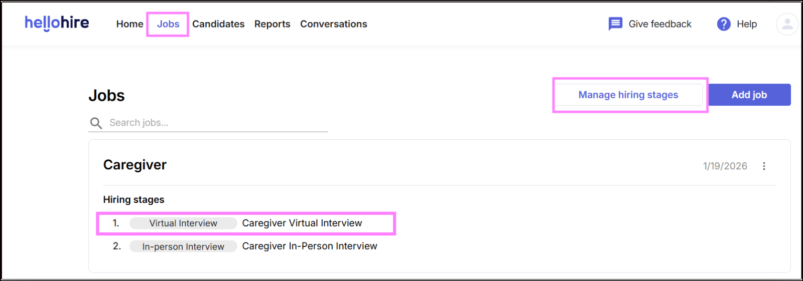 Note: One way to access is by clicking directly on Virtual Interview (Caregiver Virtual Interview).