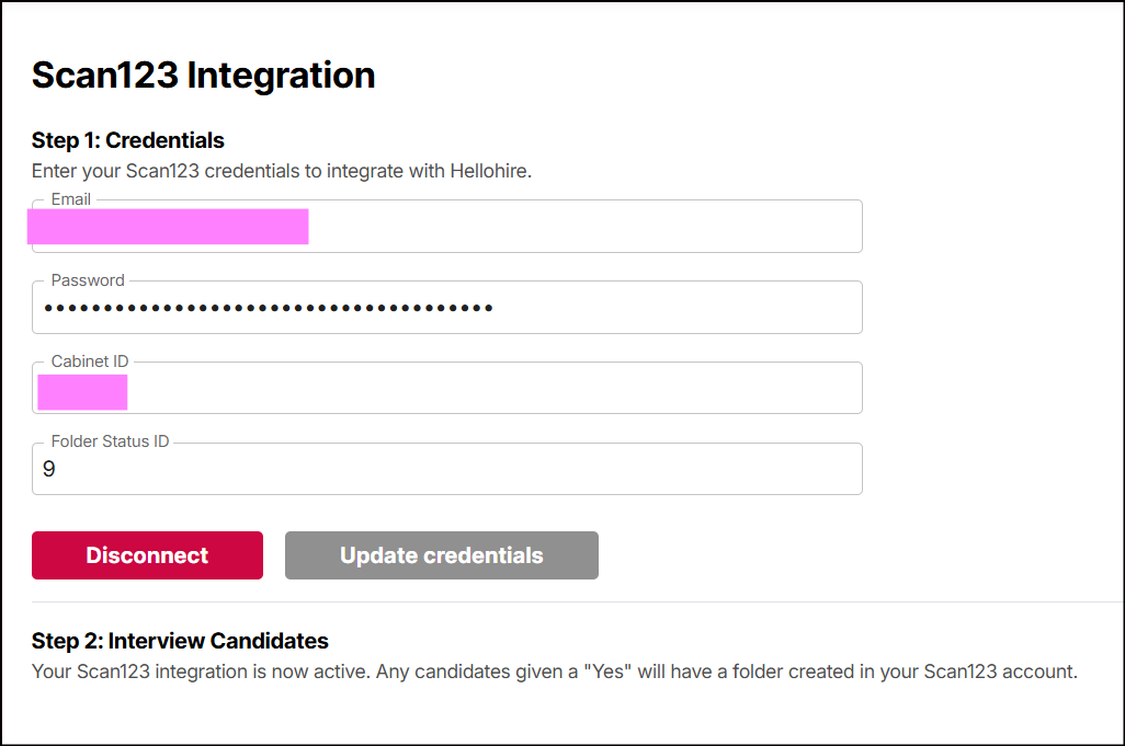 These credentials allow Hellohire to securely connect to your Scan123 account.