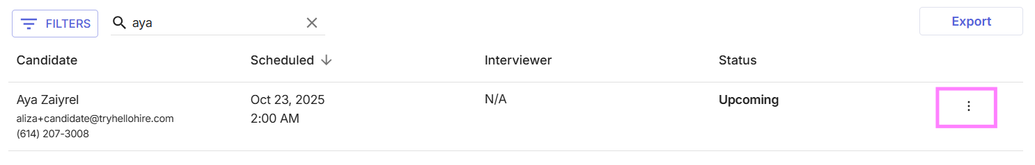 Find the candidate you want to reschedule.