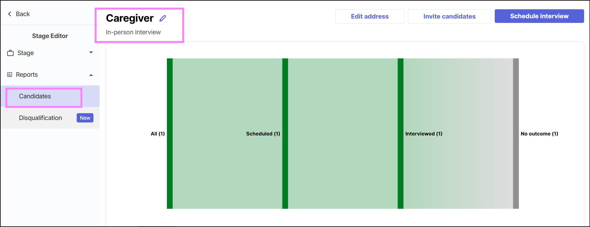 - The candidate will receive a new email confirming the new schedule of their in-person interview.
