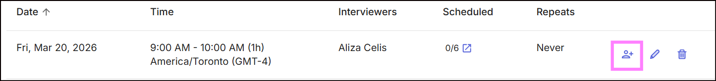 - Look for the new timeslot you’d like to assign the candidate to.